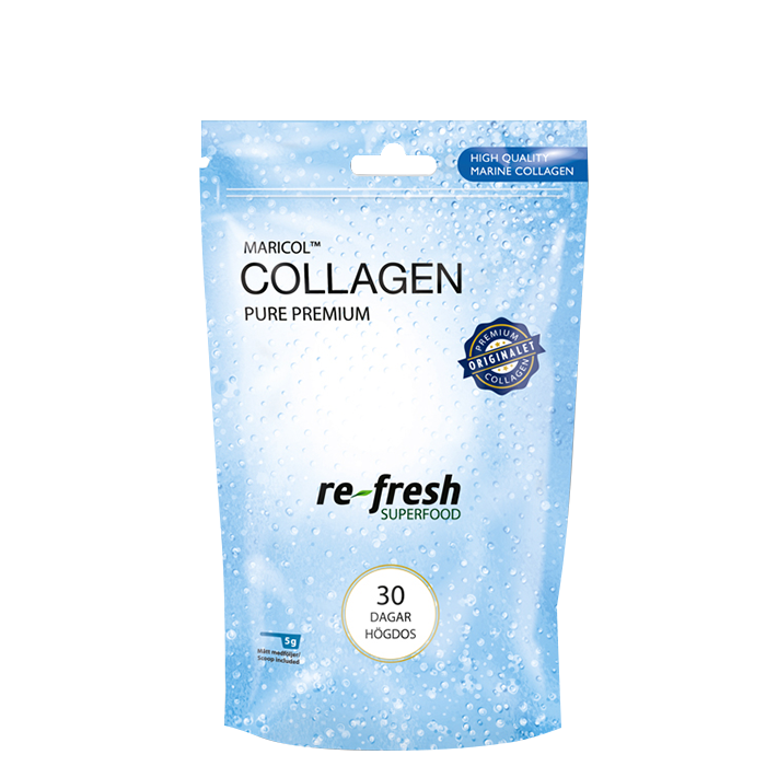 Collagen Pure Premium är marint kollagen av högsta kvalité. Kollagen är huvudprotein i kroppens bindväv; hud, leder och brosk. En produkt med ren råvara utan tillsatser.