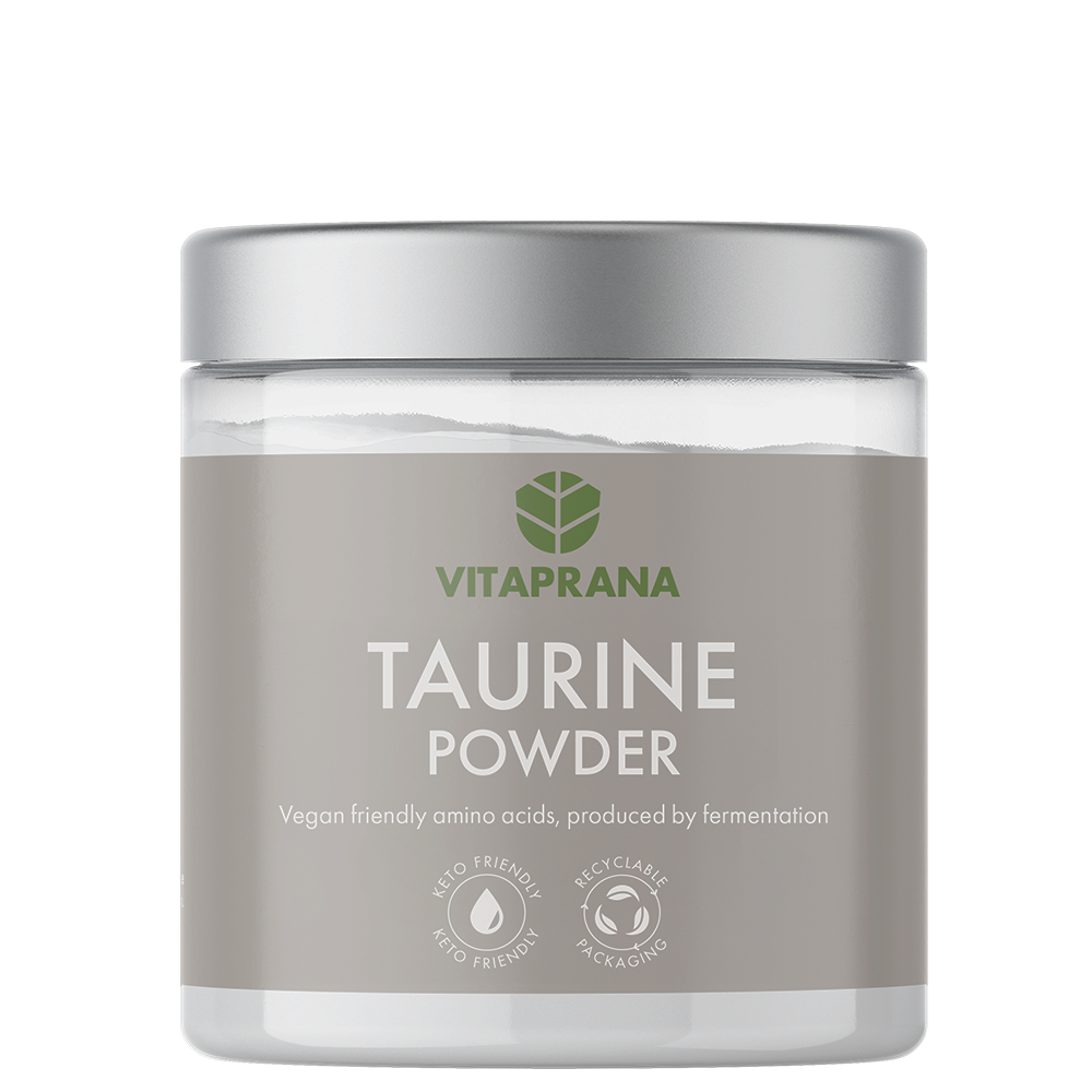 Vitaprana Taurine Aminosyror Pulver är ett 100 % veganskt och fermenterat taurinpulver utan smak eller onödiga tillsatser. Den rena formulan passar dig som vill ha ett lättblandat tillskott för träning, återhämtning eller som komplement till en växtbaserad kost. Praktisk, återvinningsbar förpackning och lång hållbarhet gör det till ett smart val för aktiva vuxna.